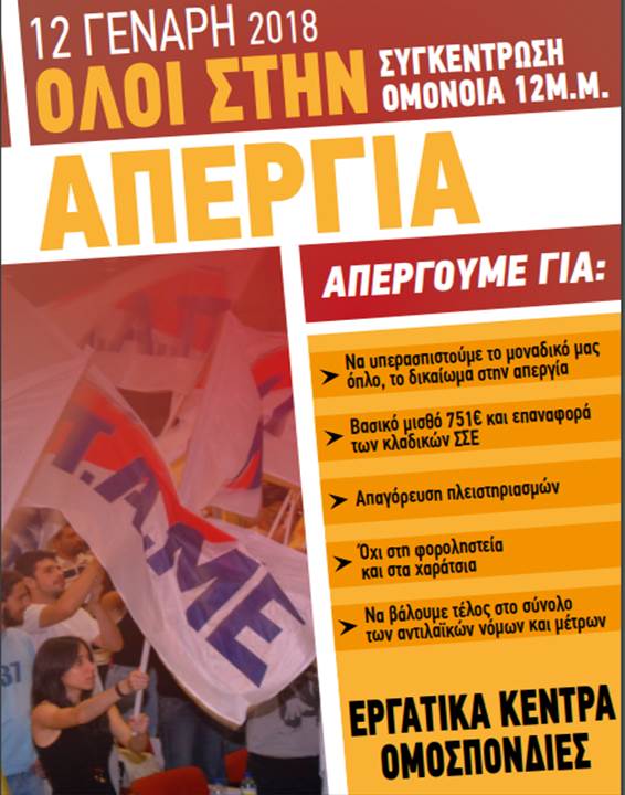 ΌΛΟΙ ΣΤΗΝ ΑΠΕΡΓΙΑ ΠΑΡΑΣΚΕΥΗ 12/1 ΣΤΙΣ 12:00 ΣΤΗΝ ΟΜΟΝΟΙΑ ΜΕ ΤΟ Π.Α.ΜΕ.!