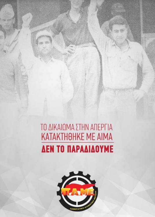 μαζί με τα δεκάδες εργατικά κέντρα, ομοσπονδίες και συνδικάτα που συσπειρώνονται στο ταξικό κίνημα, στο ΠΑΜΕ.